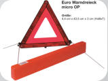 InhaltEuro-Warndreieck microFarben: Größe:44x435x30 mm (hxbxt)erfüllt die ECE-RegulationVersandeinheit40 Stück