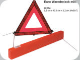 InhaltEuro-Warndreieck miniFarben: Größe:58x435x32 mm (hxbxt)erfüllt die ECE-RegulationVersandeinheit40 Stück